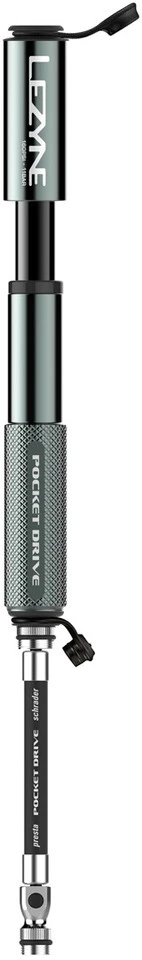 La mini bomba Pocket Drive de Lezyne, fabricada en aluminio mecanizado por CNC, impresiona por su forma compacta, su bajo peso y su compatibilidad con SV/AV.