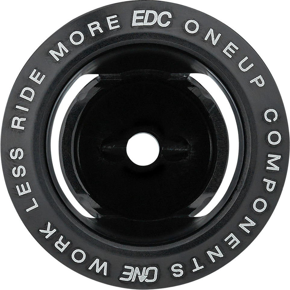 El Threadless Carrier es un contenedor que permite transportar la OneUp Components EDC V2 Tool en el tubo de horquilla sin tener que cortar una rosca en él. Se monta en lugar de la araña de la horquilla y pretensa el juego de dirección mediante un tornillo. Al hacerlo, crea espacio para el set de herramientas Everyday Carry V2, que consta de una herramienta multiusos con 10 funciones y una herramienta combinada de desmontadores de cubiertas/tronchacadenas Incluso la cápsula de almacenamiento más pequeña, en la que se puede guardar un Tubeless Plug Kit con herramienta de inserción y parches, cabe allí.