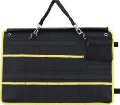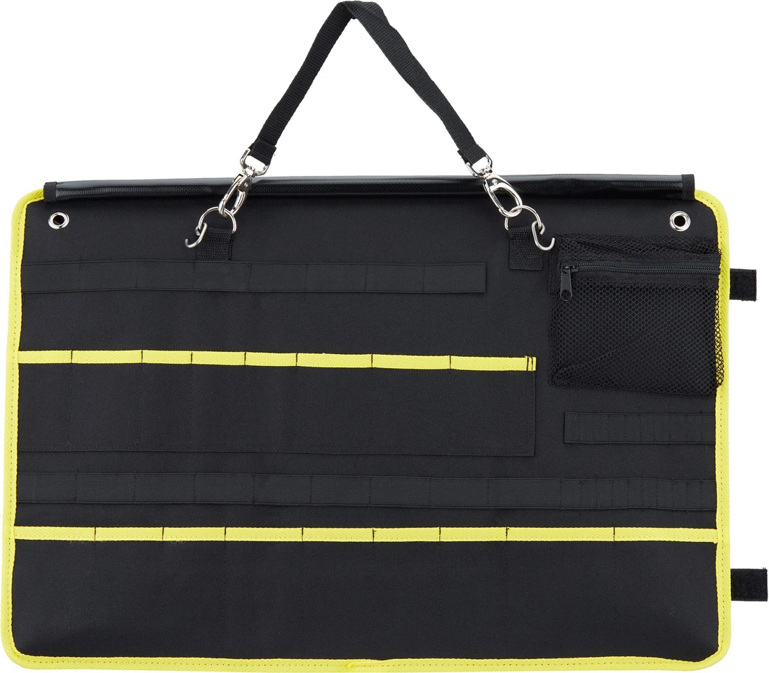 Especificaciones:Tamaño:60 x 40 cm (desenrrollada)Características:diseño compacto ideal para viajes y transportese puede plegar llenamuchos compartimentos para herramientas de diferentes tamañosbolsillo de malla grande con cremallera8 compartimentos pequeños adecuados para puntaslazos elásticos para fijar herramientasfabricado con material impermeable y resistenteel sistema X-frame convierte la bolsa en una paleta de herramientas fijaNúmero de fabricante:6450696