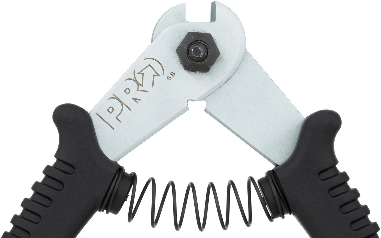 Los cables de frenos y de cambios se cortan rápida y limpiamente con el cortador de cables Bowden PRO. Además, las tapas y los manguitos de los extremos también se pueden prensar con el cortacables.