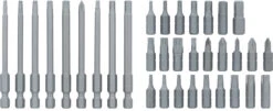 1 x Carraca de bits MICRO Proxxon1 x Bit Torx T10 extralargo1 x Bit Torx T15 extralargo1 x Bit Torx T20 extralargo1 x Bit Torx T25 extralargo1 x Bit Torx T30 extralargo1 x Bit hexagonal 3 mm extralargo1 x Bit hexagonal 4 mm extralargo1 x Bit hexagonal 5 mm extralargo1 x Bit Phillips-estrella PH1 extralargo1 x Bit estándar Torx T81 x Bit estándar Torx T91 x Bit estándar Torx T101 x Bit estándar Torx T151 x Bit estándar Torx T201 x Bit estándar Torx T251 x Bit estándar Torx T271 x Bit estándar Torx T301 x Bit estándar Torx T401 x Bit hexagonal estándard 2 mm1 x Bit hexagonal estándard 2,5 mm1 x Bit hexagonal estándard 3 mm1 x Bit hexagonal estándard 4 mm1 x Bit hexagonal estándard 5 mm1 x Bit hexagonal estándard 6 mm1 x Bit hexagonal estándard 8 mm1 x Bit estándar multi-dientes (XZN) 5 mm1 x Bit estándar multi-dientes (XZN) 6 mm1 x Bit estándar multi-dientes (XZN) 8 mm1 x Bit estándar Phillips-estrella PH01 x Bit estándar Phillips-estrella PH11 x Bit estándar Phillips-estrella PH21 x Bit estándar Pozidriv-estrella PZ11 x Bit estándar Pozidriv-estrella PZ21 x Bit estándar plano 3,5 mm1 x Soporte magnético1 x Caja de transporte de acero