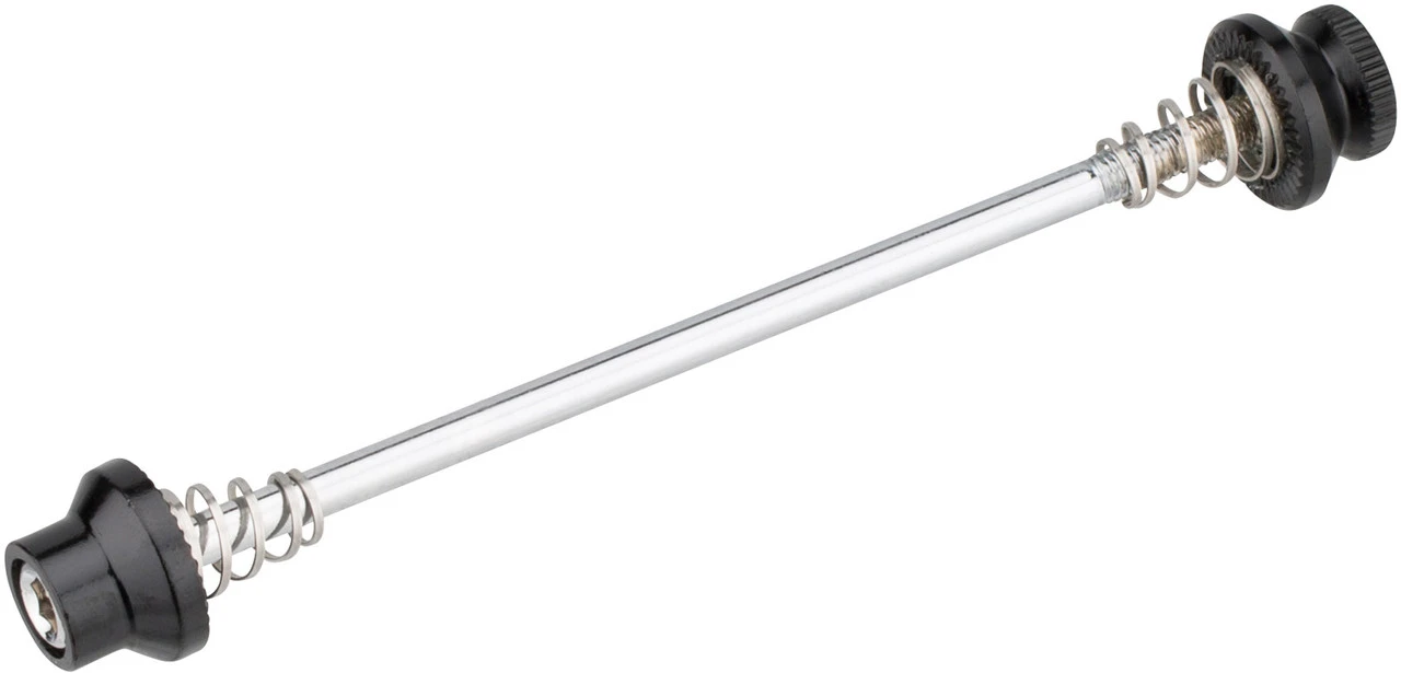 El set de cierres rápidos de buje para MTB de 3min19sec consta de un eje de tensión para la parte delantera (dimensión de montaje 9 x 100 mm) y un eje de tensión para la parte trasera (dimensión de montaje 10 x 135 mm). Con los ejes de acero cromado y las tuercas de aluminio 6061, el set pesa sólo 72 g. Se cierra simplemente con una llave hexagonal de 5 mm y funciona a la perfección en tu bici de montaña.