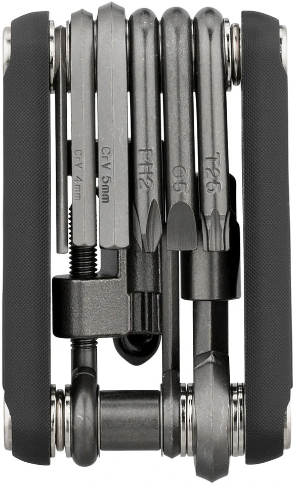 Datos técnicos:Material cuerpo:de acero inoxidableTamaño:7,6 x 4,9 x 2,3 cmFunciones:14Funciones:Llave hexagonal 2 mm, 3 mm, 4 mm, 5 mm, 6 mm, 8 mmTorx: T25-Llave de radios: 14/15/16G/M7