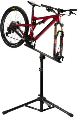 Especificaciones:Diseño:Fijación de pedalierDatos técnicos:Material:Aluminio (6061 – T6)Altura de trabajo:85 – 145 cmCapacidad máxima de carga:18 kgCaracterísticas:brazo de montaje compatible con ejes de cierre rápido, así como con ejes pasantes de 12 x 100 mm, 15 x 100 / 15 x 110 mm, 20 x 110 mmde altura ajustableángulo ajustable de 90°ajustable horizontalmentegiratorio en 360°incluye 2 correas con hebilla de trinquete (44,5 cm y 71,5 cm de longitud)bandeja de herramientas disponible opcionalmenteNúmero de fabricante:TW022