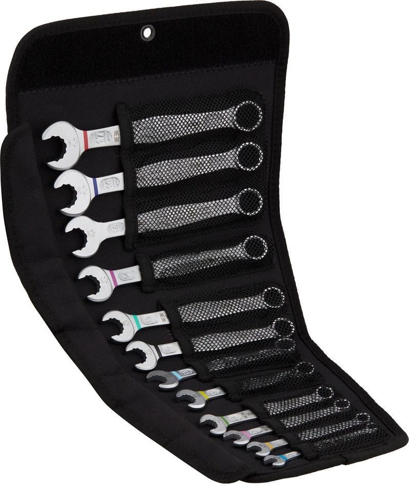 4 x Llave de boca y anillo Wera Joker 6003 (6, 7, 8, 9, 10, 11, 12, 13, 14, 16, 17)1 x Llave de boca y anillo Wera Joker 6003 Pedal (15)1 x Tira velcro Wera1 x Estuche plegable Wera